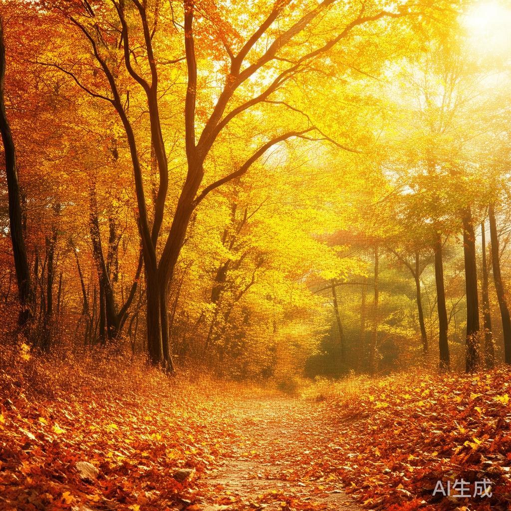 金秋时节,郊外的树林仿佛被调色盘重新染过,五彩斑斓的叶子在阳光下闪烁着温暖的光辉。微风拂过,树枝间发出轻柔的“沙沙”声,如同大自然在倾诉它的秘密。漫步在小路上,踩着厚厚的落叶,耳边传来清脆的“咔嚓”声,似乎每一步都能唤醒沉睡的回忆。