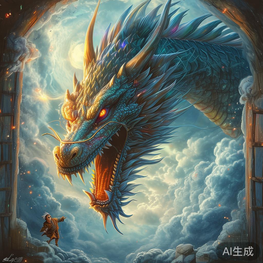 叶公喜爱的消息传至天庭,真龙觉得很有趣,于是决定降临人间探望他。一天,真龙翩然而至,把庞大的头伸进叶公的窗户。叶公看到之后,惊恐万状,立刻逃跑。